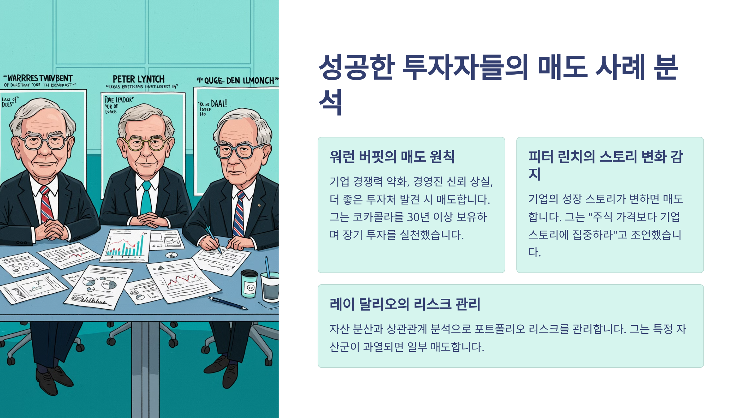 그렇다면 이들은 어떤 원칙을 가지고 매도 결정을 내렸을까요? 실제 사례를 살펴보면서 성공적인 매도 전략을 배워볼게요. 📊