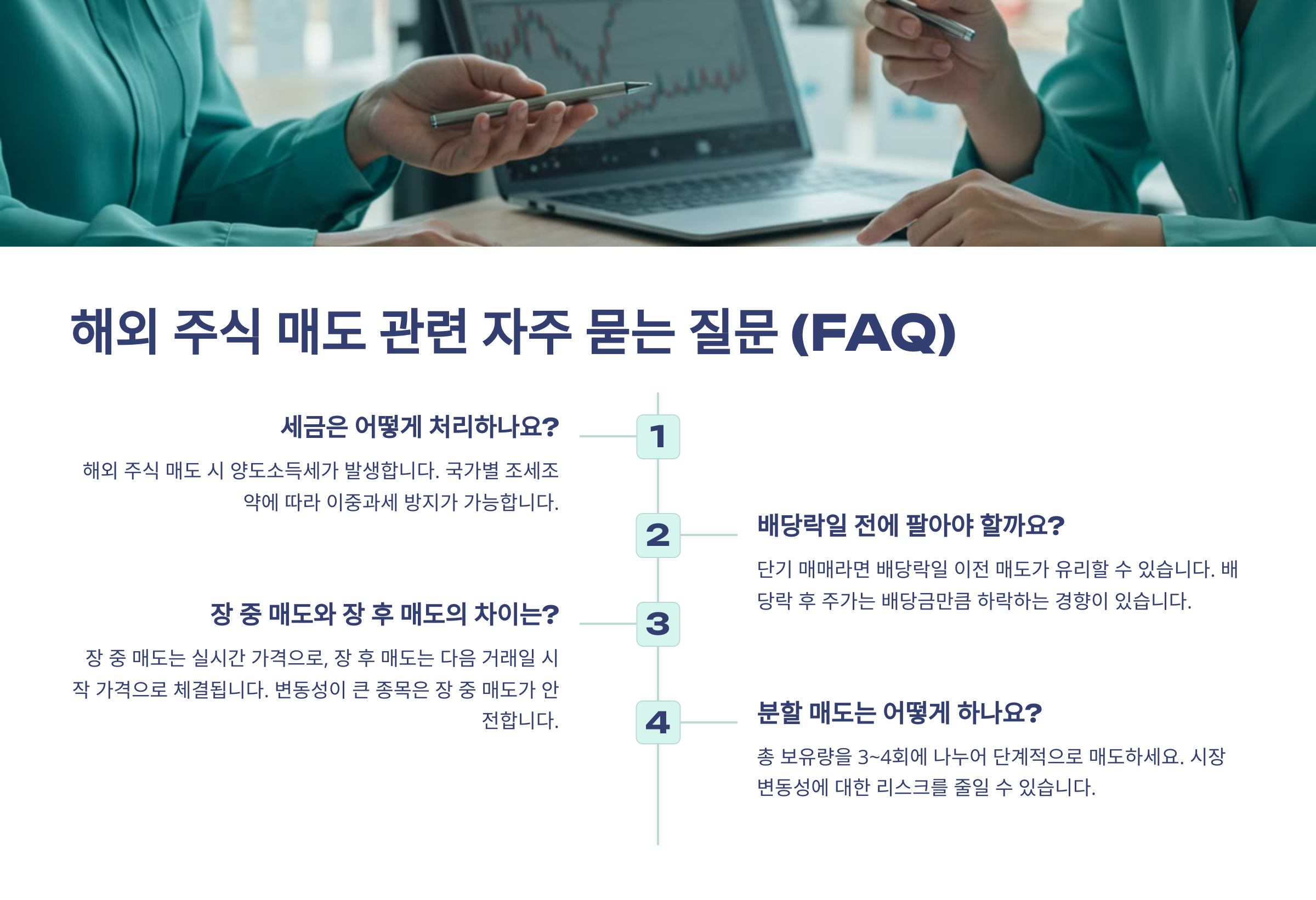그럼 이제 해외 주식 매도와 관련해서 자주 묻는 질문(FAQ)을 정리해볼게요! 📢