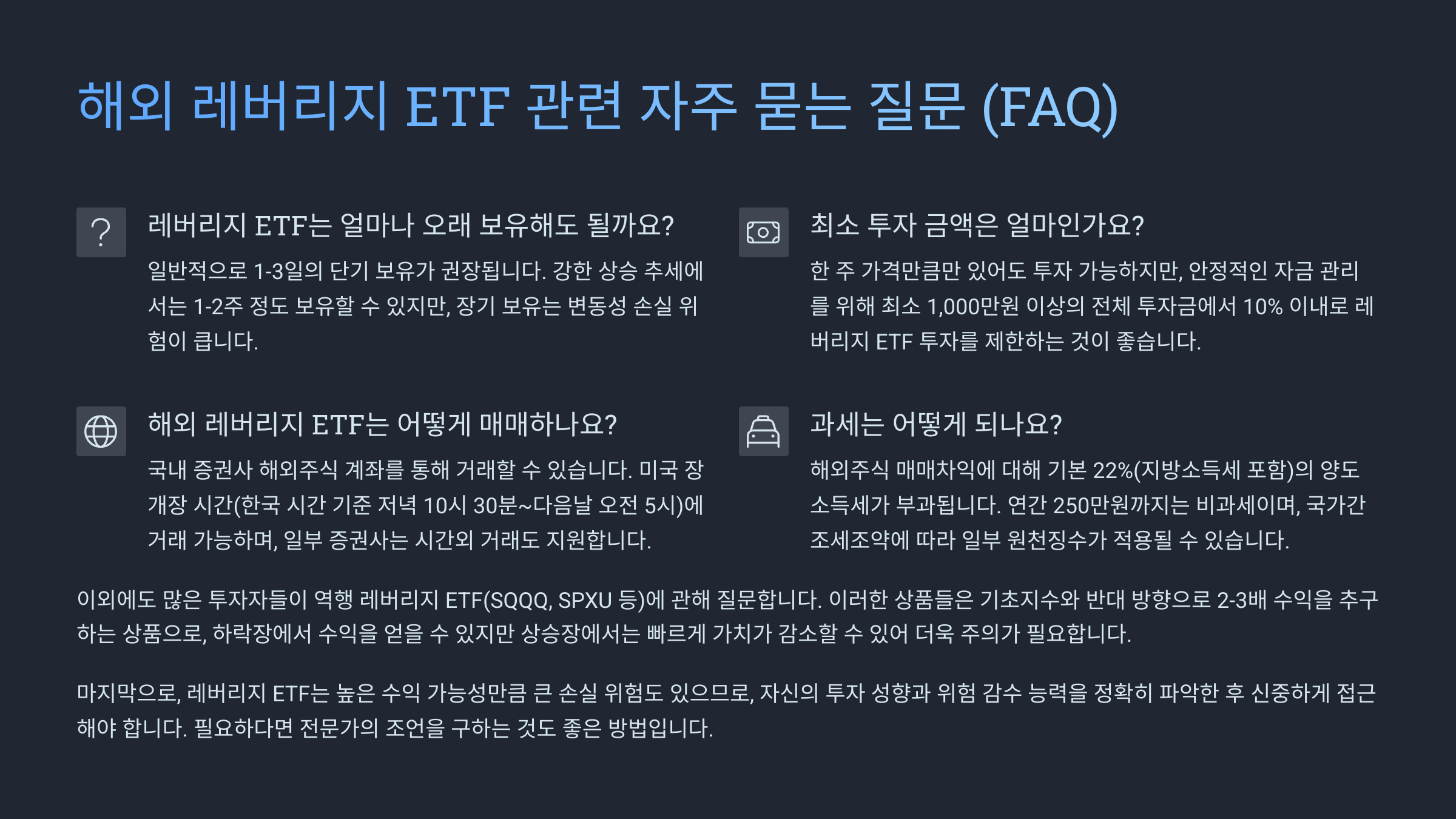 ❓ 해외 레버리지 ETF 관련 자주 묻는 질문 (FAQ)
