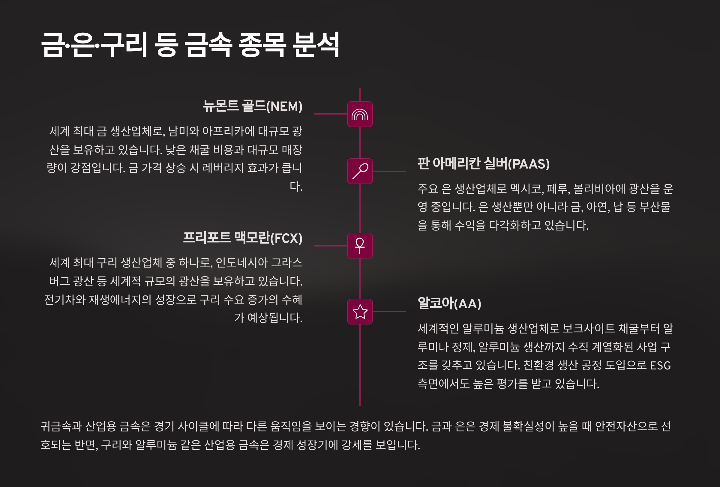 금속 원자재 기업은 금리보다는 원자재 가격, 수요 전망, 채굴 원가에 따라 실적이 갈려요. 투자 전 관련 자원 가격 추세도 꼭 체크해야 해요🔍