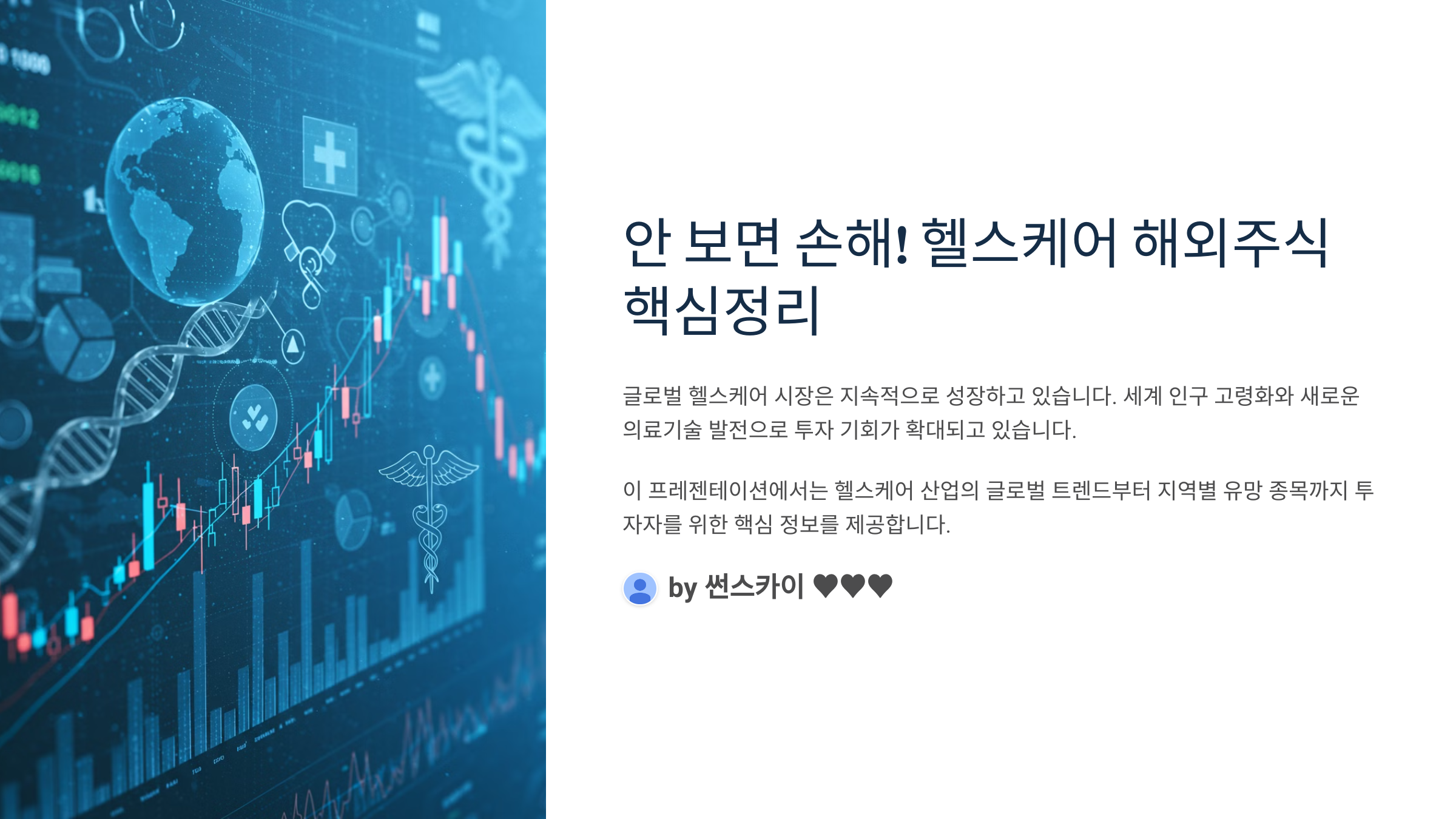 이번 글에서는 글로벌 헬스케어 산업의 트렌드부터, 미국·유럽·아시아의 유망 종목, ETF를 통한 분산투자, 투자 시 주의할 점까지 낱낱이 파헤쳐볼게요! 💉📈
