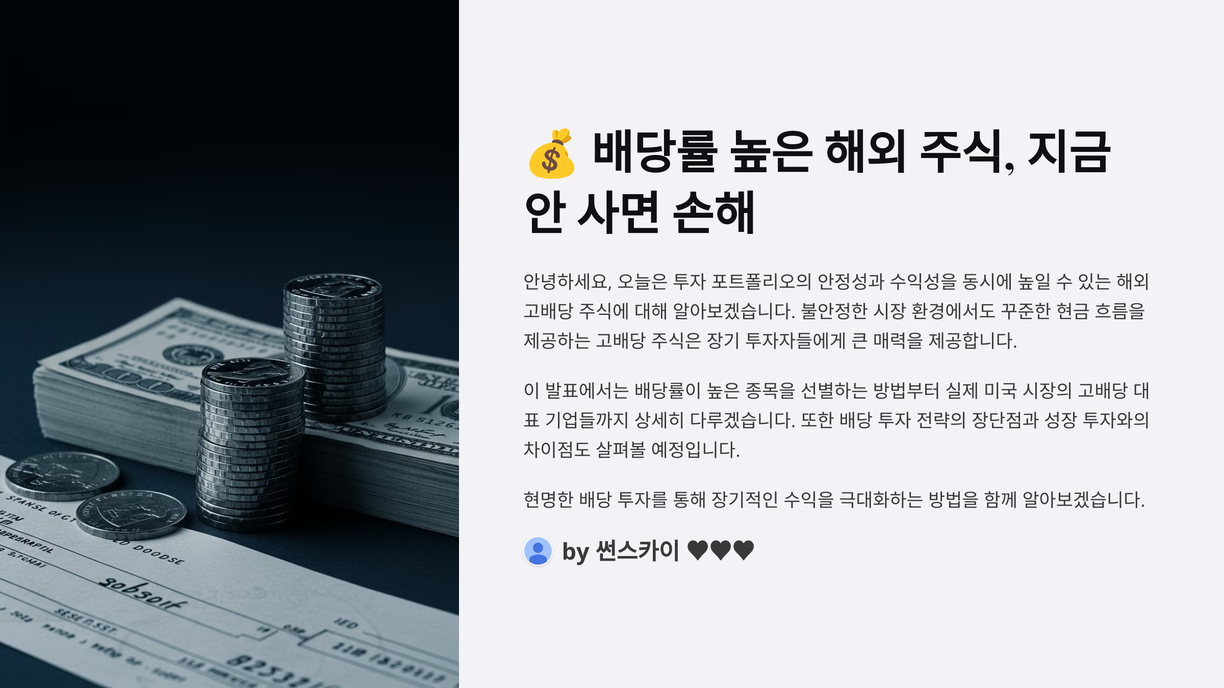 2025년 지금, 변동성 큰 시장에서 안정적인 수익을 추구하는 투자자들 사이에서 해외 고배당주가 다시 주목받고 있어요. 주가가 흔들려도 배당은 꼬박꼬박 지급되기 때문에 꾸준한 현금흐름이 가능하거든요.