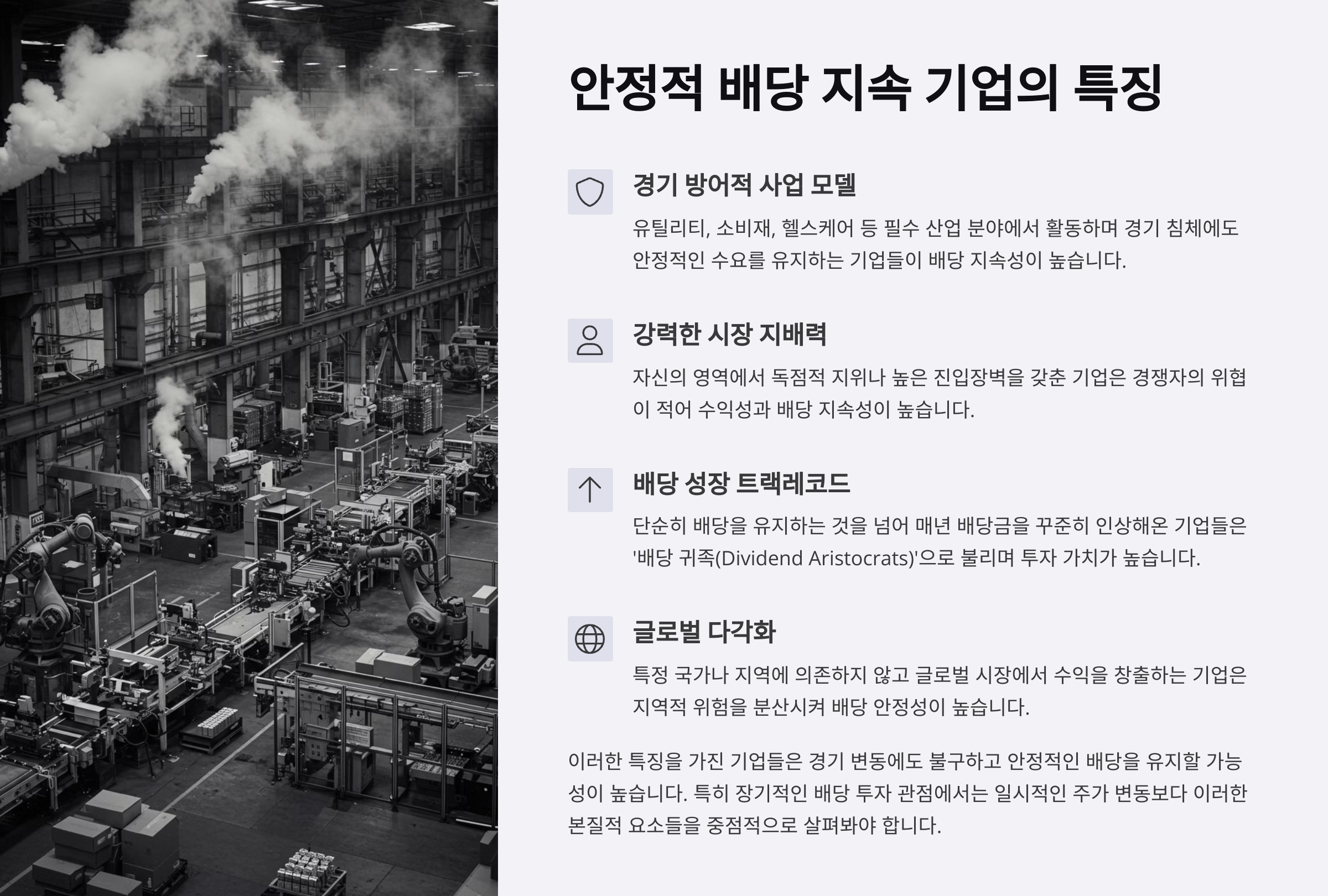 배당률만 보고 고르면 '고배당 함정'에 빠질 수 있어요. 수치 뒤에 있는 기업의 기초체력을 꼭 함께 보셔야 해요. 다음 섹션에서는 안정적으로 배당을 유지하는 기업의 조건을 구체적으로 알려드릴게요! 🏦