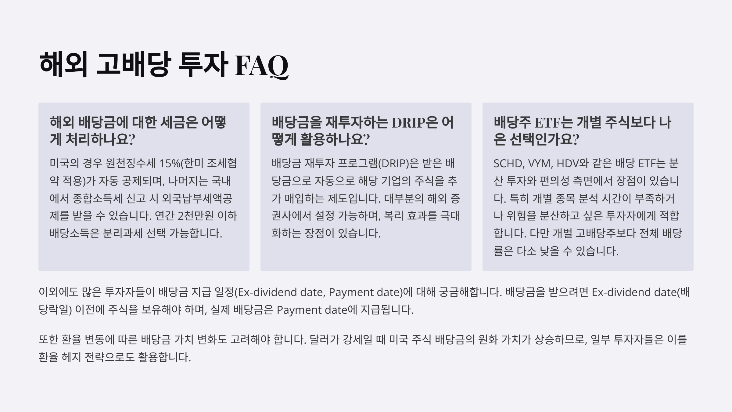 ❓ 해외 고배당 종목 관련 자주 묻는 질문 (FAQ)