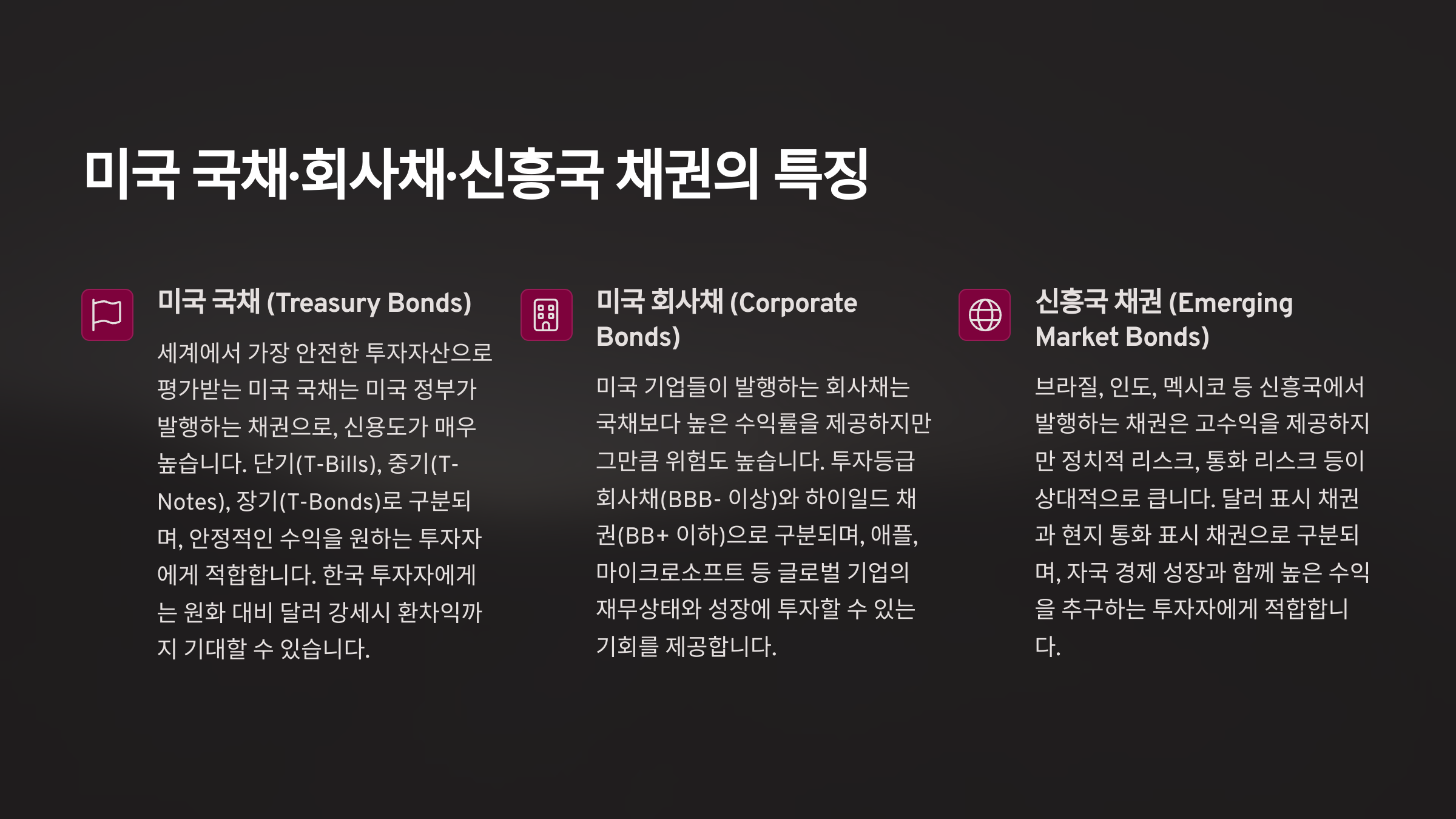 🏦 미국 국채·회사채·신흥국 채권의 특징
