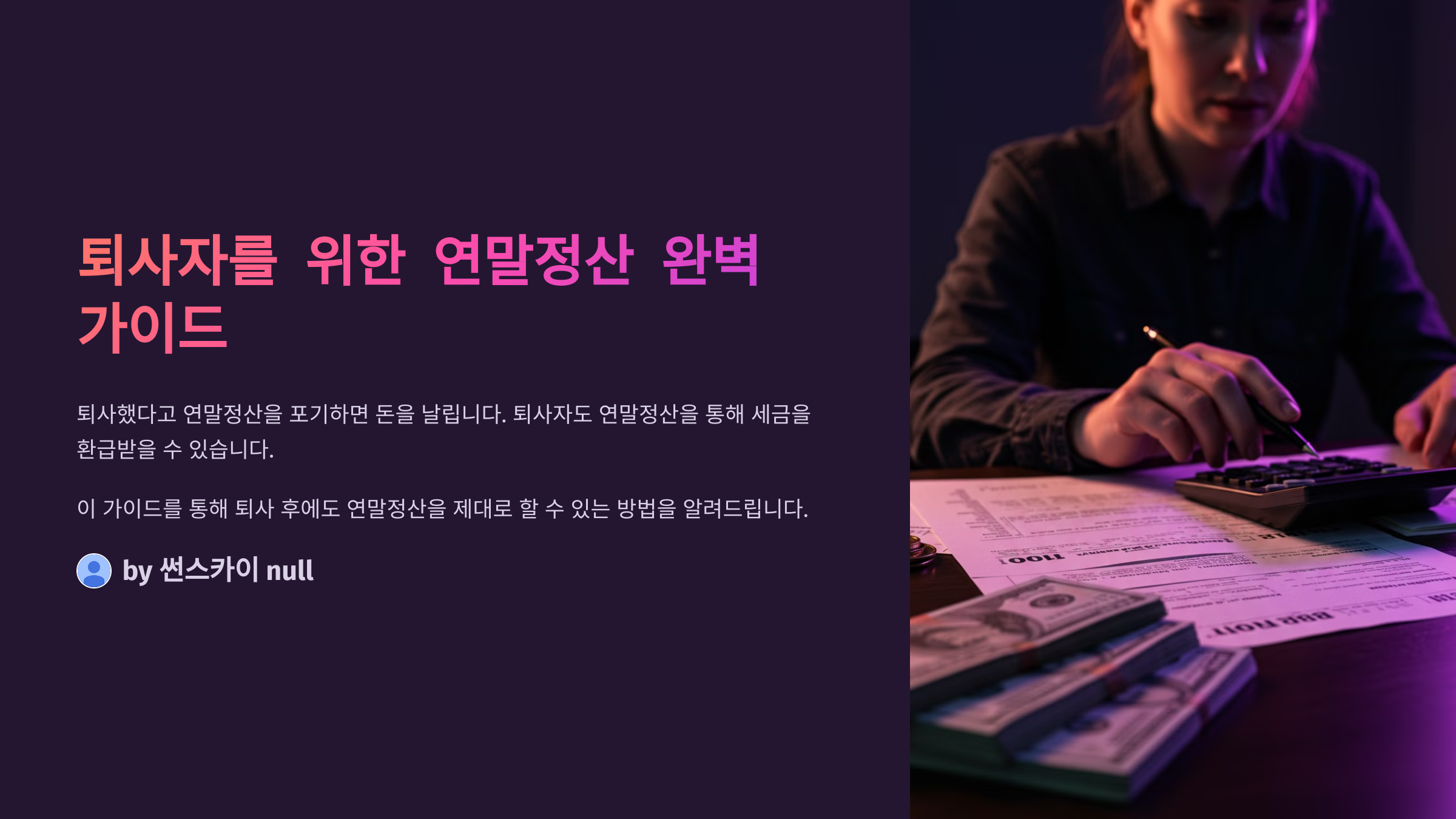 연말정산은 직장인이 1년 동안 납부한 세금을 정산하여 **추가 납부하거나 환급받는 절차**예요. 하지만 **퇴사자의 경우 연말정산 방식이 달라**서 제대로 챙기지 않으면 **돌려받을 돈도 못 받을 수 있어요!** 💸