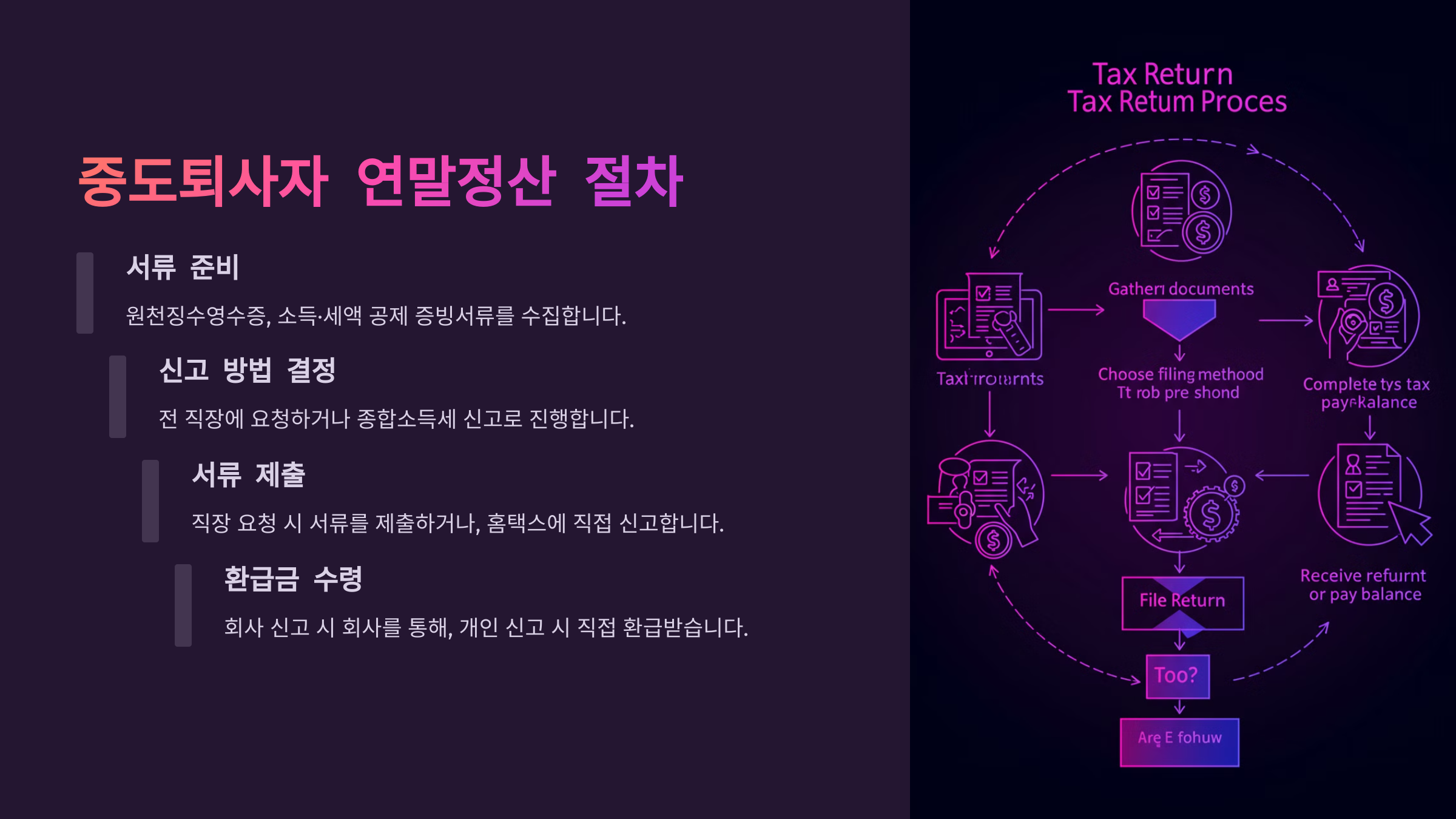 퇴사한 사람도 연말정산을 꼭 해야 해요! 📝 특히 **중도퇴사자의 경우 연말정산 절차가 일반 직장인과 다를 수 있기 때문에** 절차를 정확히 알고 있어야 해요. 잘못하면 세금을 더 낼 수도 있고, 돌려받을 돈도 놓칠 수 있답니다. 💸