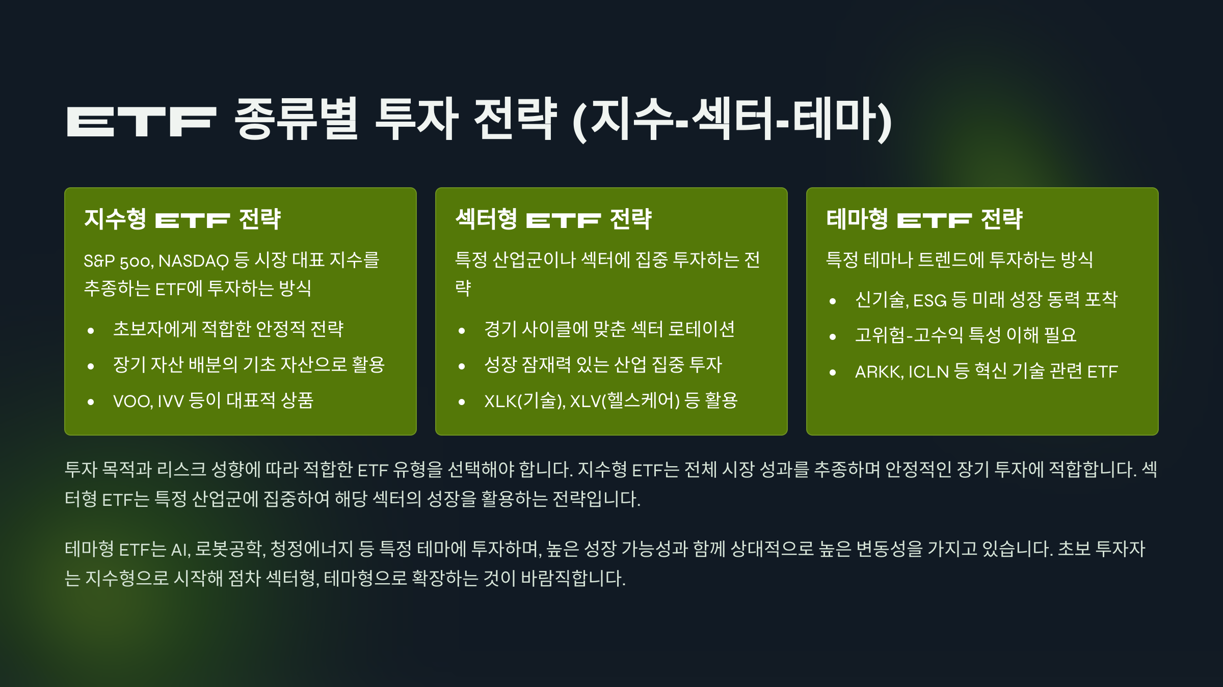 🔍 ETF 종류별 투자 전략 (지수·섹터·테마)