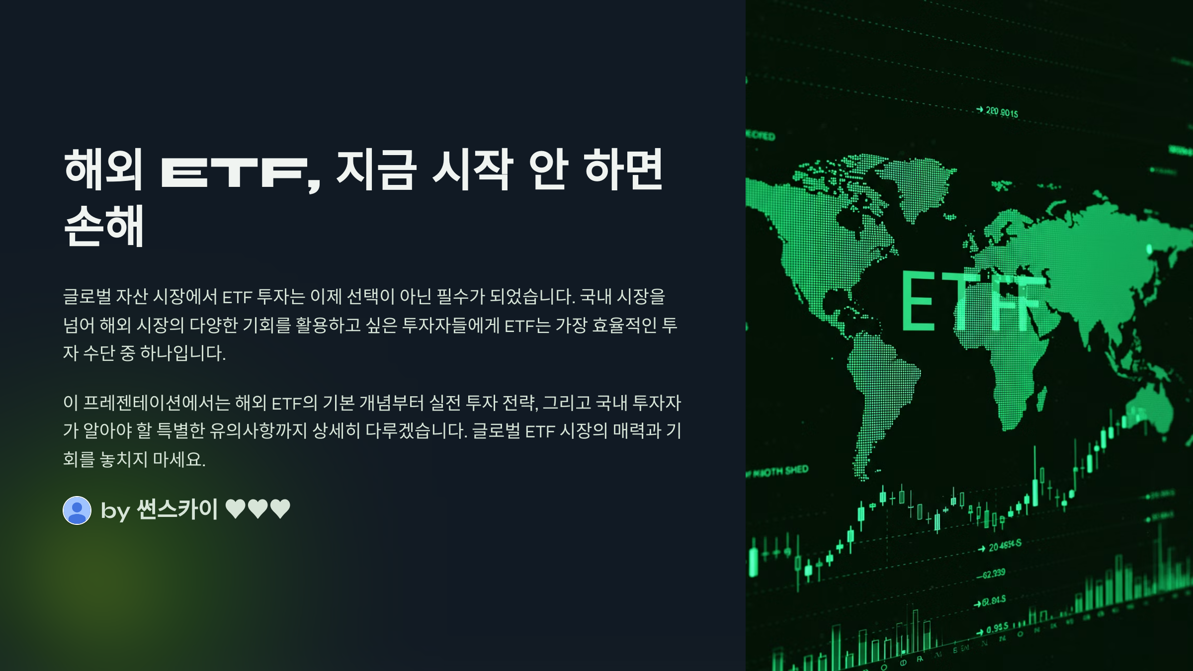 ETF는 종목별 리스크보다 시장 전체 혹은 특정 산업의 흐름을 따라가고 싶은 분들에게 더없이 좋은 상품이에요. 초보자에게도 비교적 쉬운 진입 장벽 덕분에 글로벌 투자 입문용으로 딱이죠. 🚀