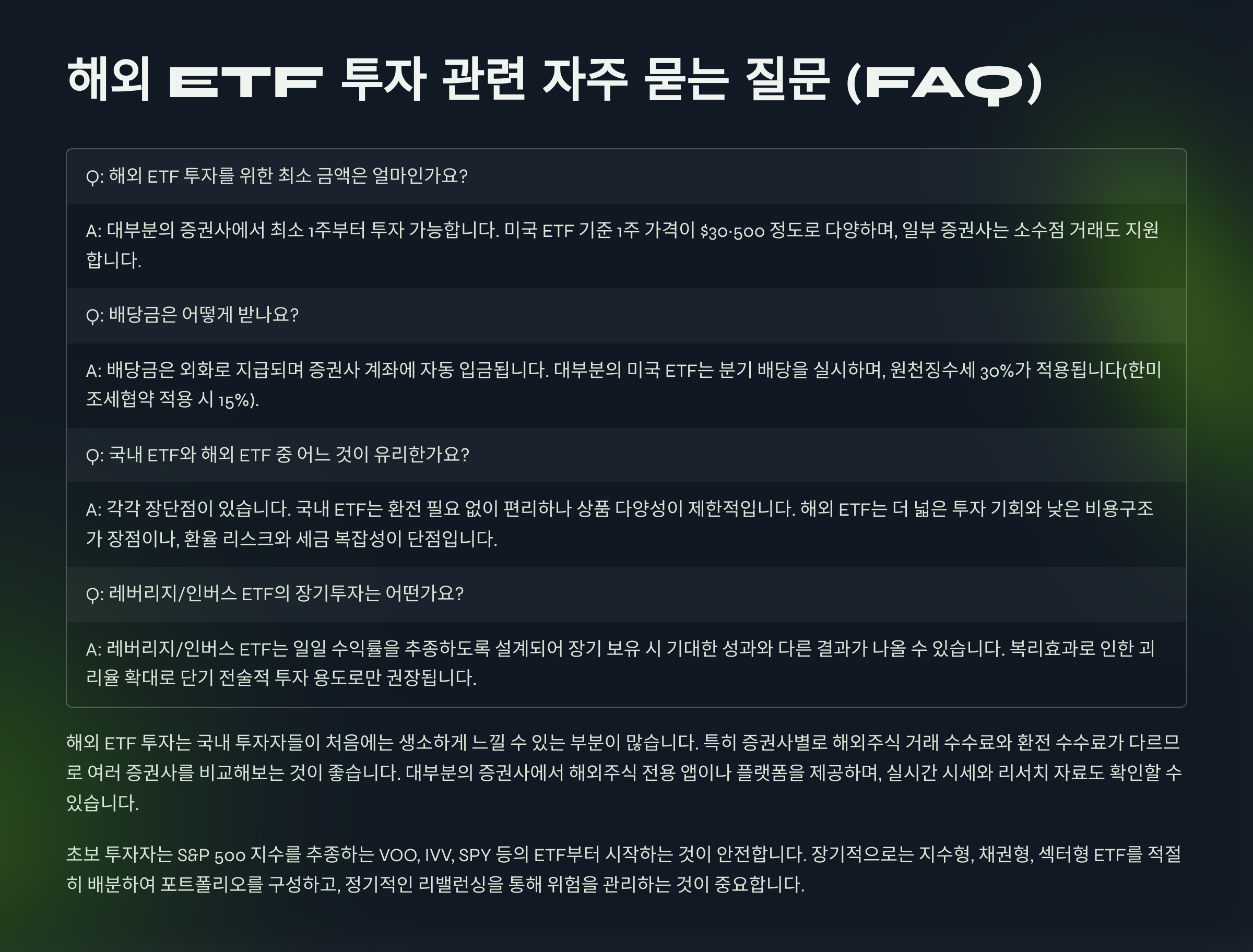 ✅ 해외 ETF 투자 관련 자주 묻는 질문 (FAQ)