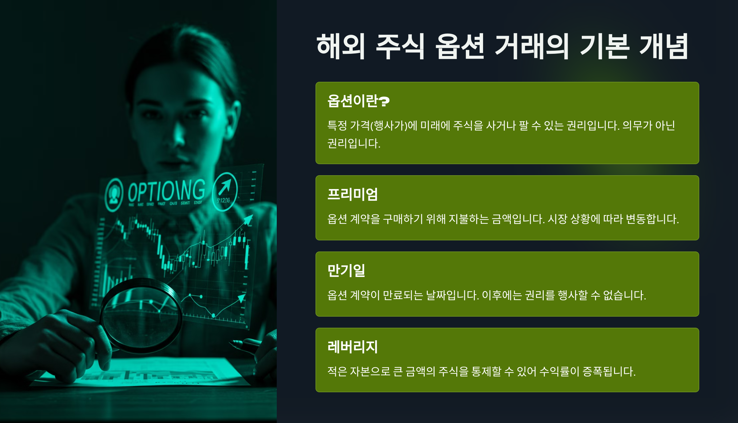 이 글에서는 옵션 거래의 개념부터 수익을 극대화할 수 있는 전략, 계좌 개설 방법, 피해야 할 리스크까지 상세히 다룰 거예요. 옵션 투자를 처음 접하는 투자자라면 필수 체크 포인트를 놓치지 마세요! 🚀