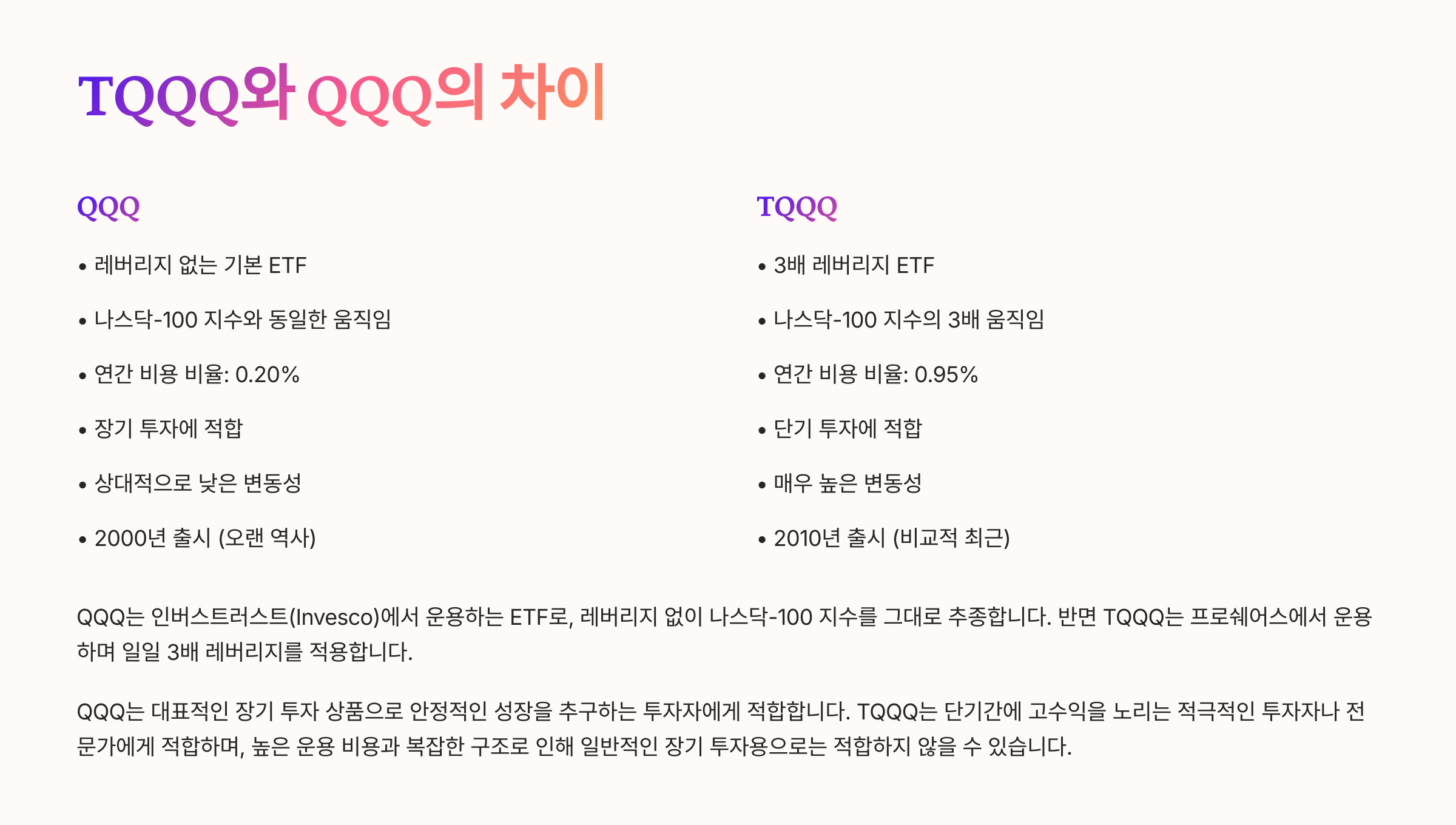 🔍 TQQQ와 QQQ의 차이