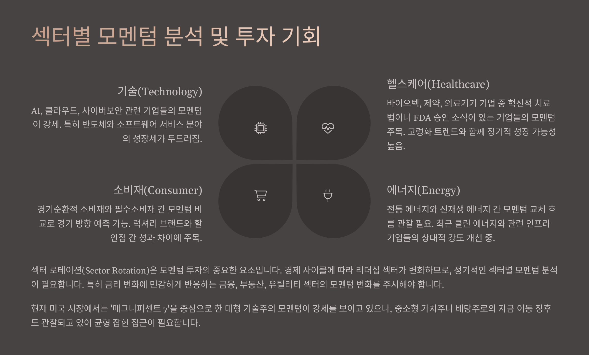 모멘텀 전략을 세울 때는 섹터별 흐름을 분석하는 게 핵심이에요. 같은 시장 내에서도 어떤 섹터는 급등하고, 어떤 섹터는 지지부진할 수 있기 때문이에요. 2025년 현재 강세를 보이는 대표 섹터는 AI, 반도체, 클린에너지예요. 🔋