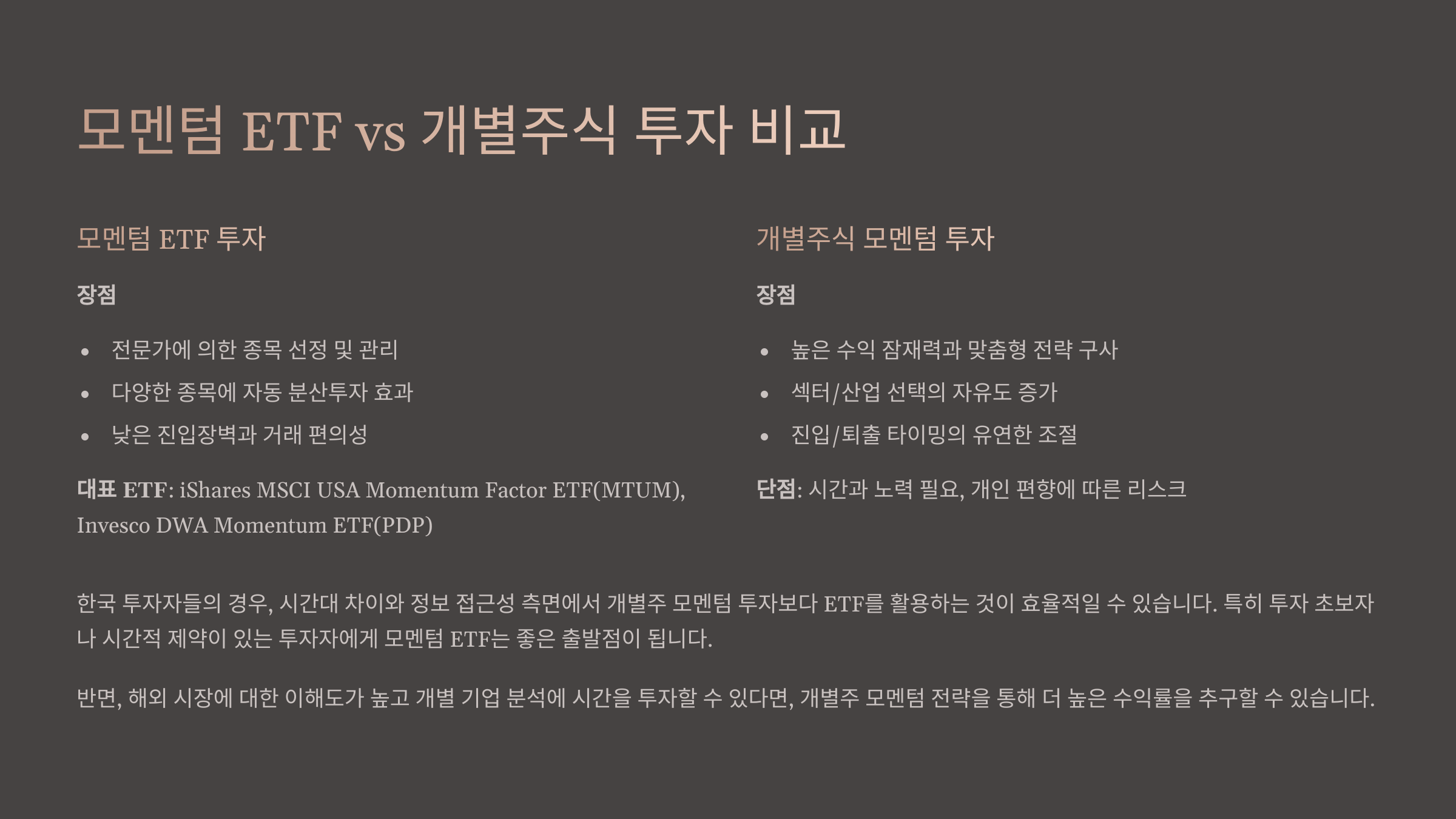 모멘텀 ETF와 개별주 비교 ⚖️📊