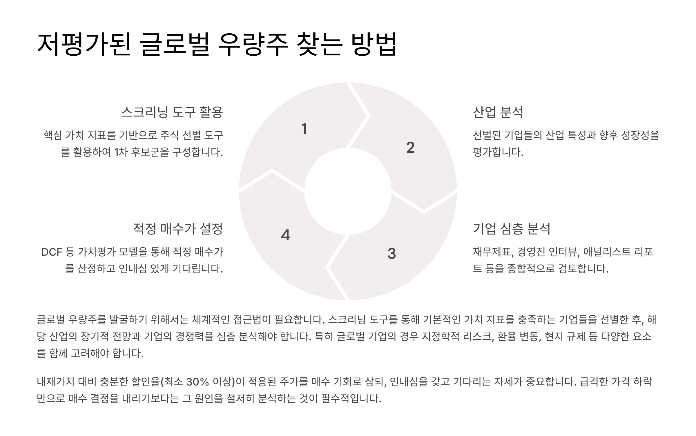 이제 저평가된 글로벌 우량주를 찾는 방법을 알아볼게요! 📉