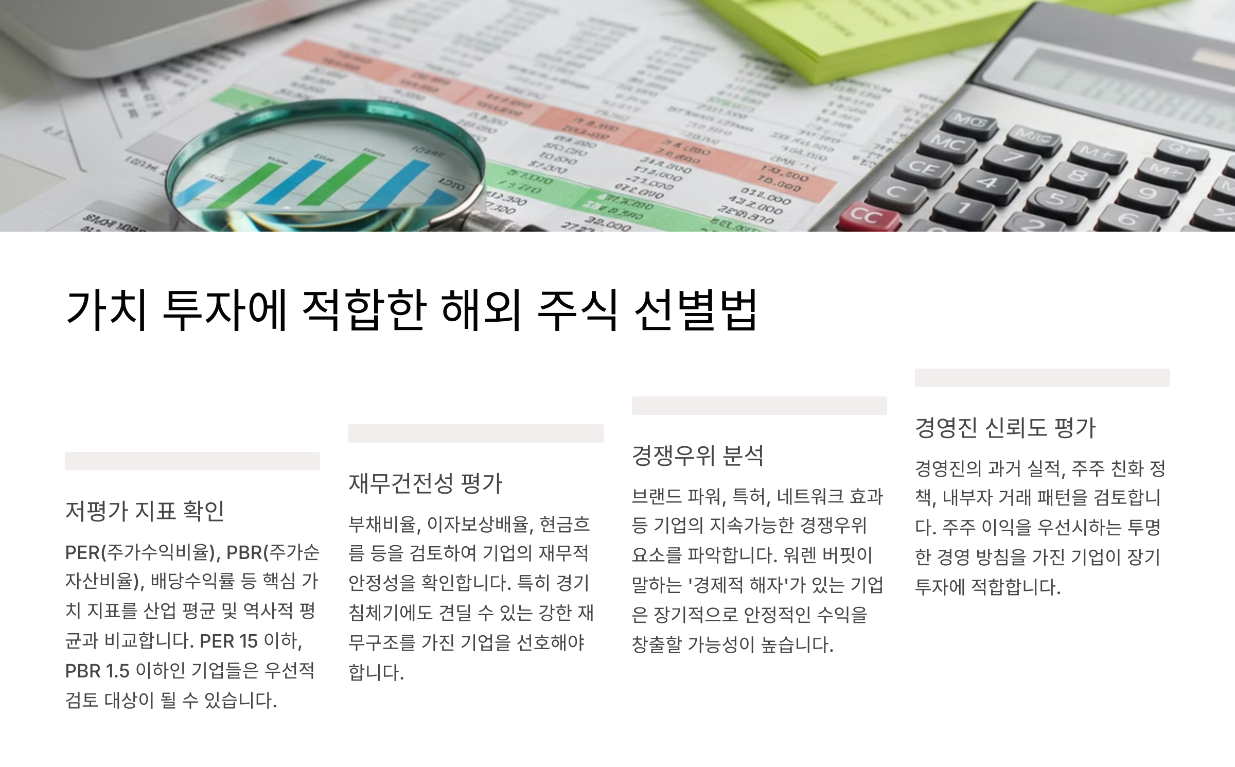 다음으로는 가치 투자에 적합한 해외 주식을 어떻게 선별하는지 알아볼게요!