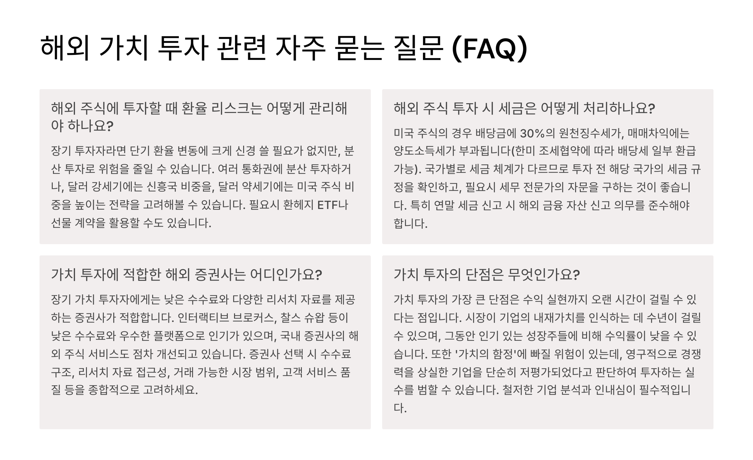 📌 해외 가치 투자 관련 자주 묻는 질문 (FAQ)