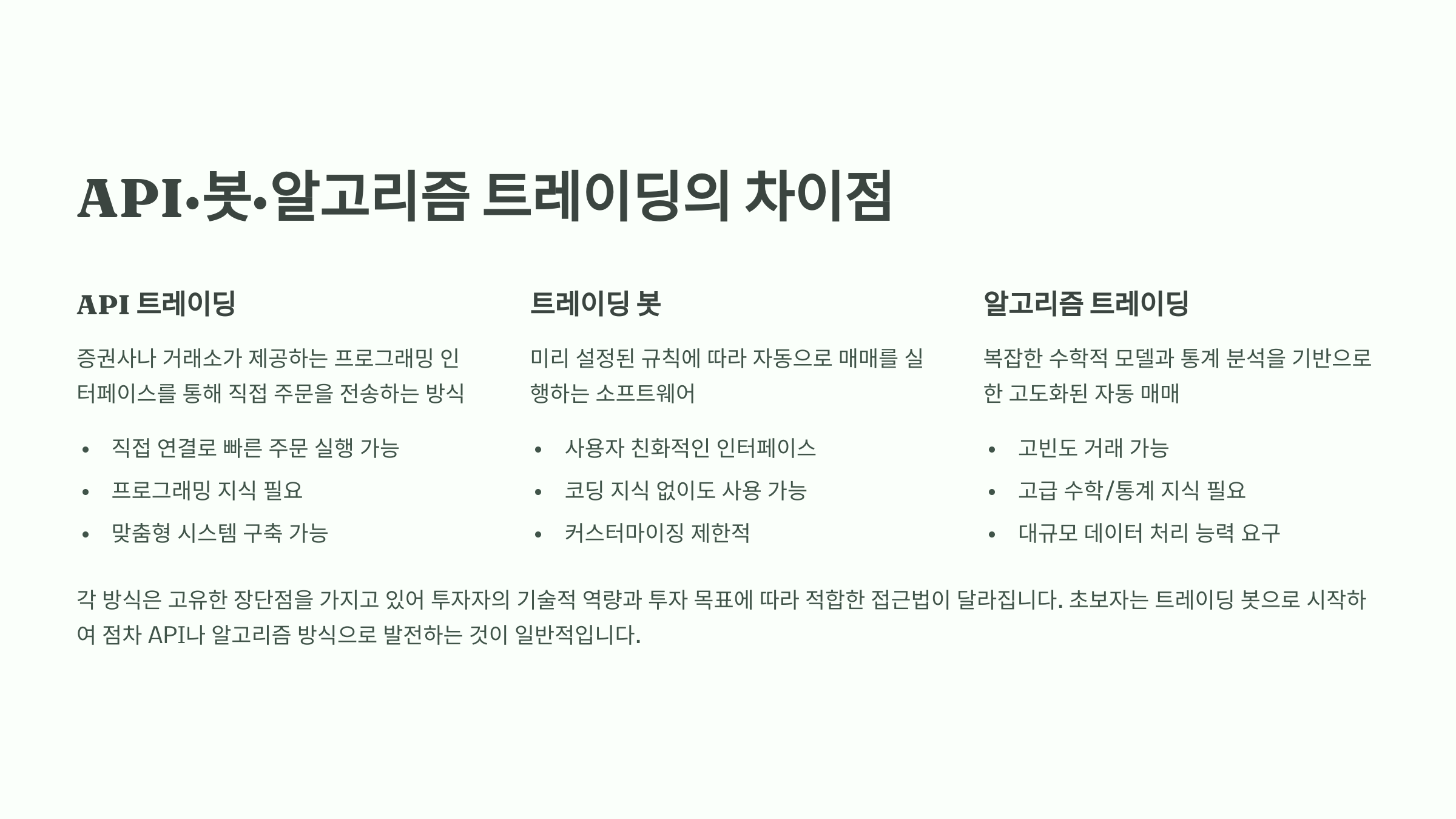 📊 API vs 봇 vs 알고리즘 트레이딩 비교 🔍