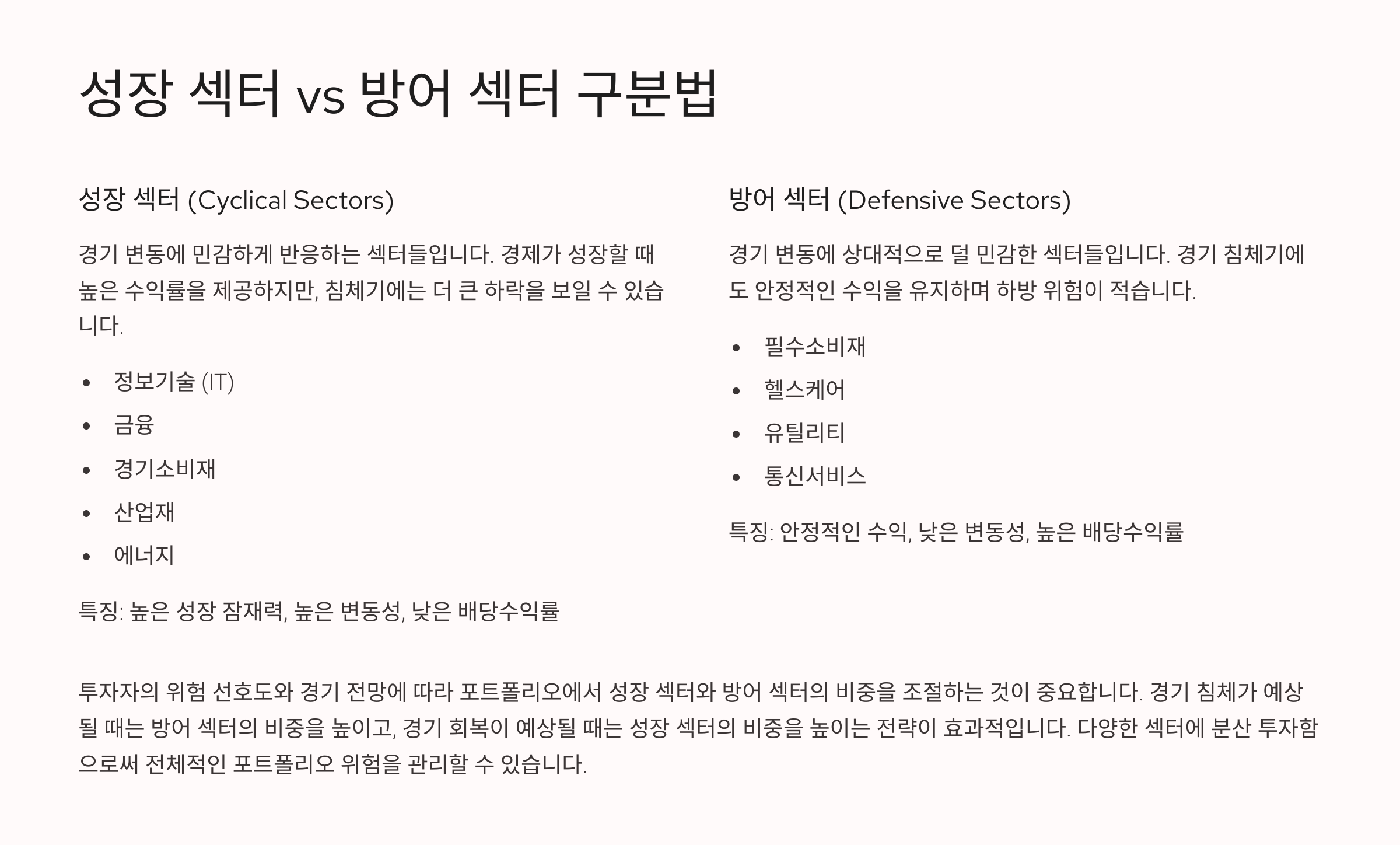 | 구분 | 성장 섹터 | 방어 섹터 |