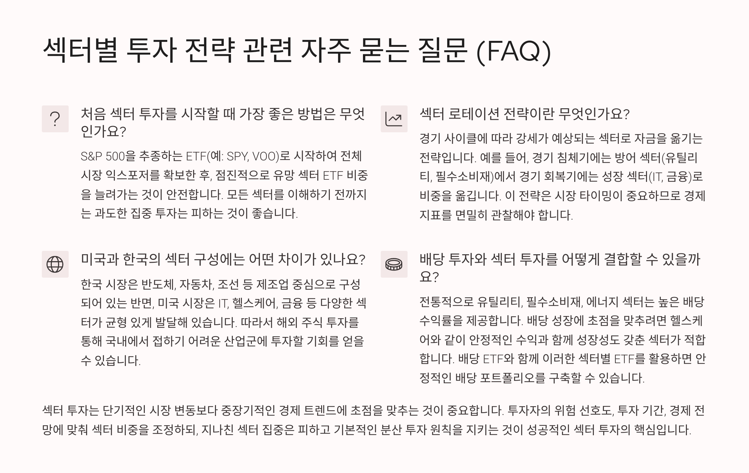 ❓ 섹터별 투자 전략 관련 자주 묻는 질문 (FAQ)