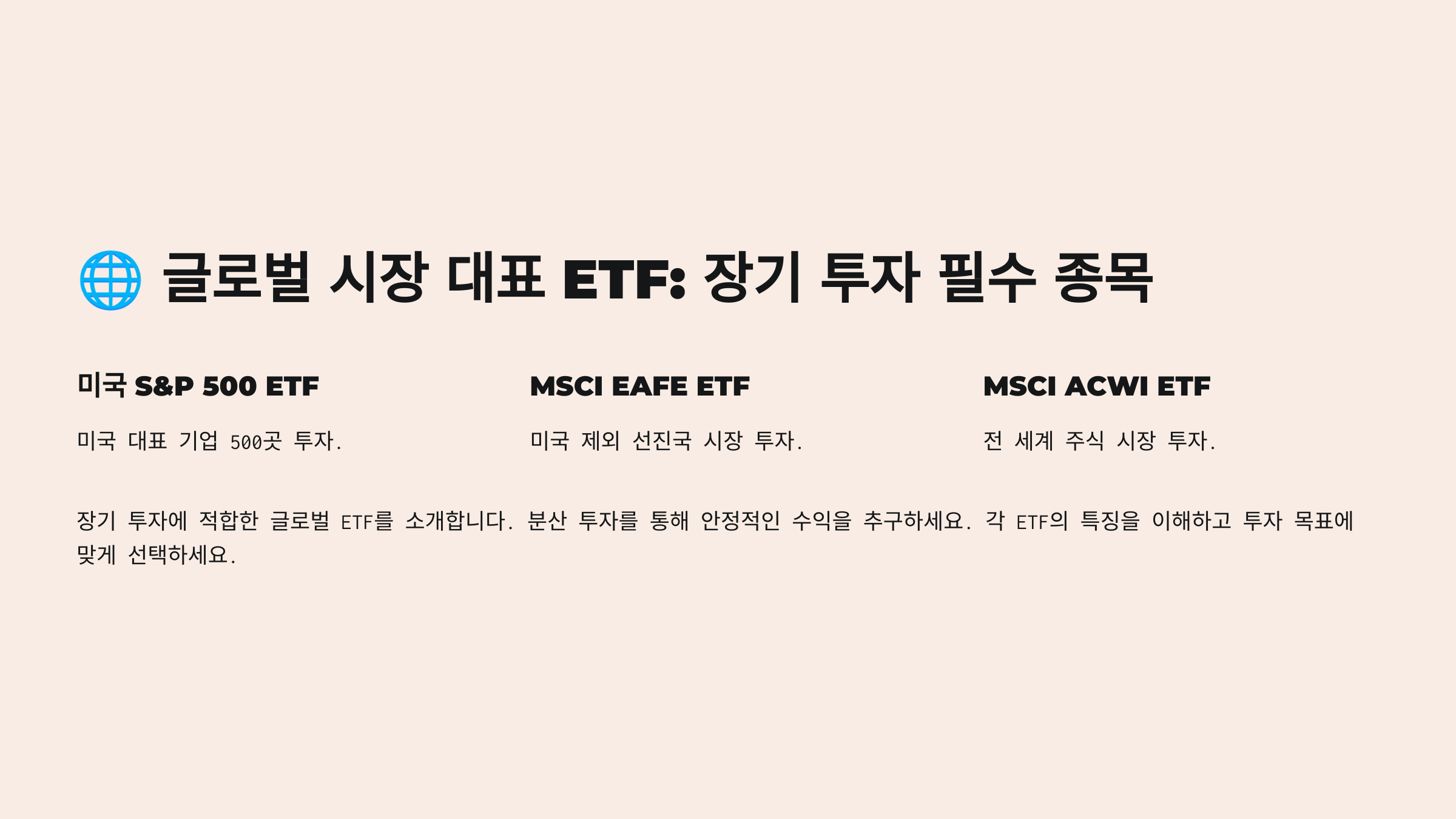 ✅ 글로벌 시장 대표 ETF, 장기 투자 필수 종목